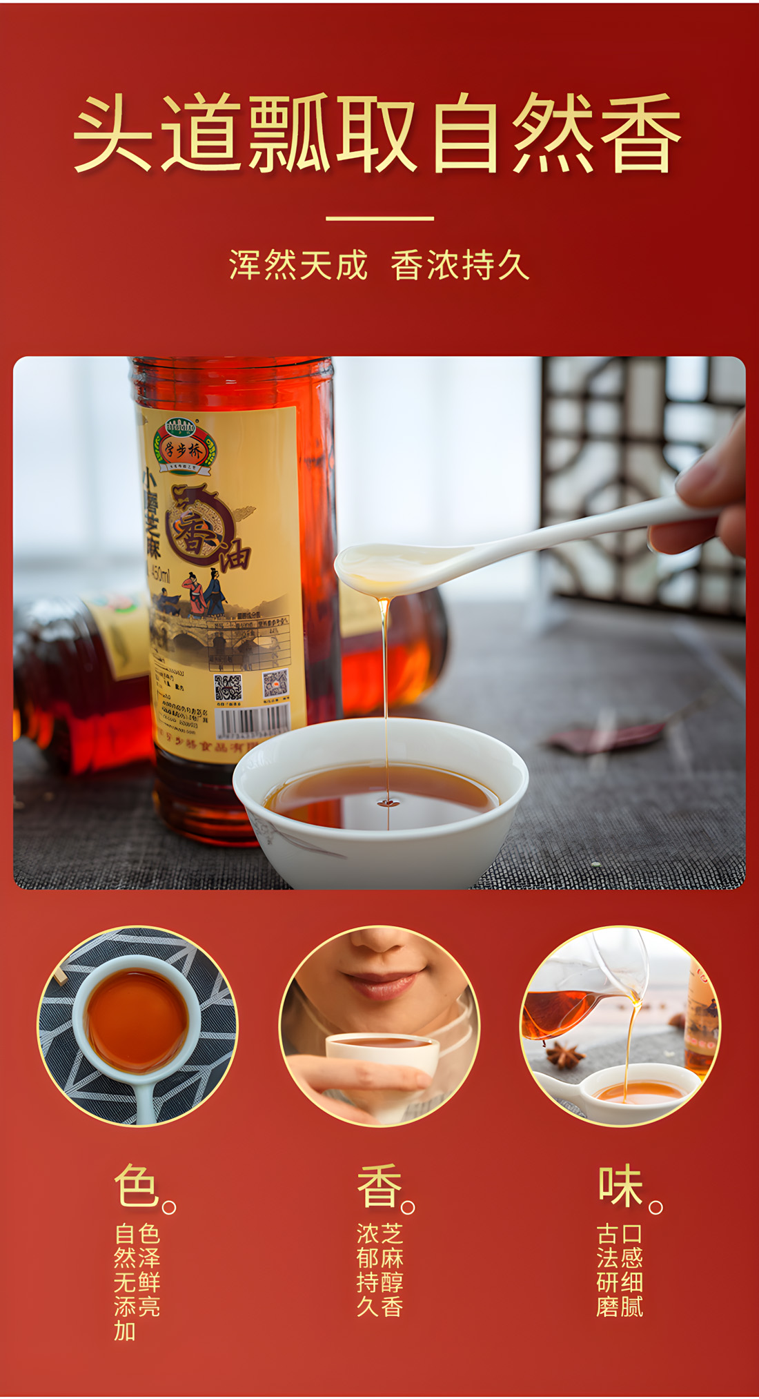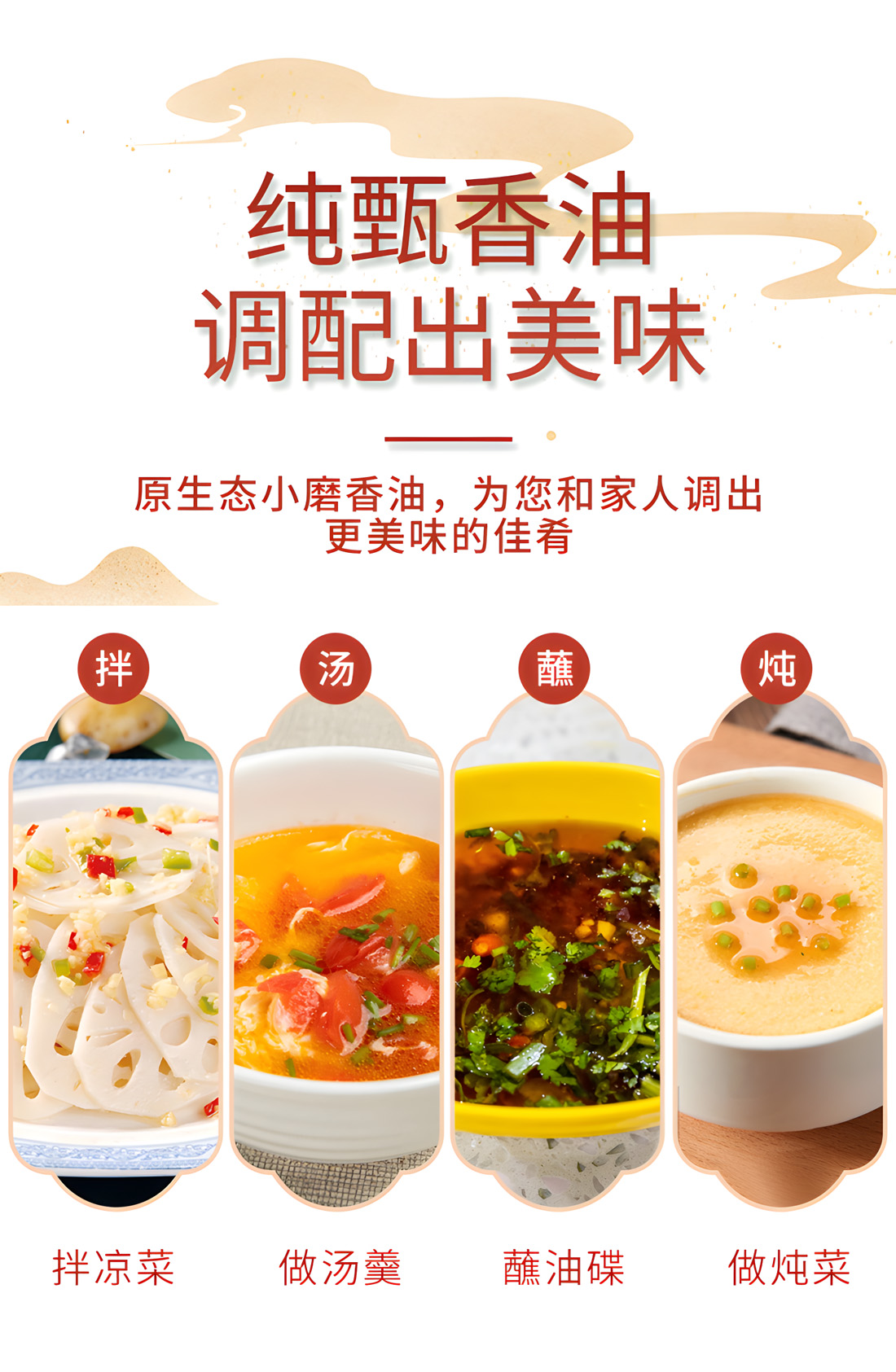 實惠大瓶裝,家庭自用更合適,涼拌、調餡、炒菜,出鍋之前加香油,只需一滴,輕松烹飪美味佳肴!
