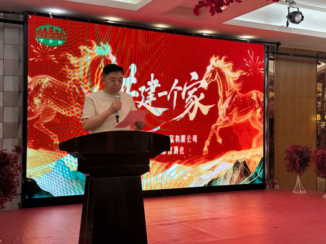 家有領航者,發展有方向。劉建堂總經理上臺致辭,深情詮釋“共建一個家”的核心內涵——這不是口號,而是彼此依靠、共同成長的溫暖集體。他回顧了過去一年全體家人的辛勤耕耘,惦念生病住院的老員工,承諾公司將持續關懷幫扶,彰顯大家庭的溫情;恰逢三八國際婦女節臨近,他向全體女同胞致以節日祝福,感謝她們撐起企業“多半邊天”。同時,劉總明確2026年作為阿米巴經營元年的重要意義,提出“把心聚在一起、把事做在實處、把夢落在腳下”的期許,愿與全體家人以事業合伙人之名,共赴共同富裕新征程。