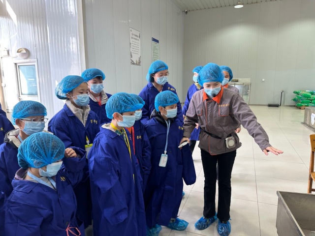 9點45分,在導師的帶領下,少年店長們走進生產車間,開啟工廠探秘·一粒芝麻的奇幻漂流之旅。身著藍色工裝、頭戴防護帽的孩子們,沿著芝麻的蛻變軌跡,近距離感受傳統工藝的魅力。